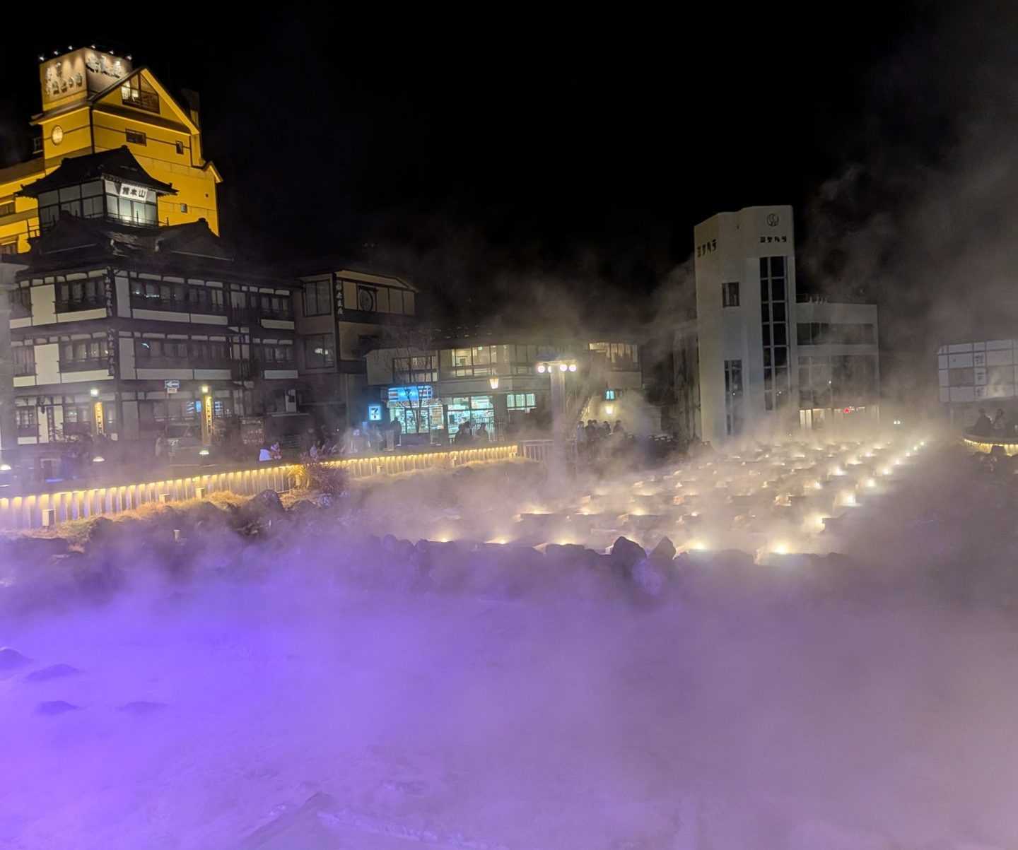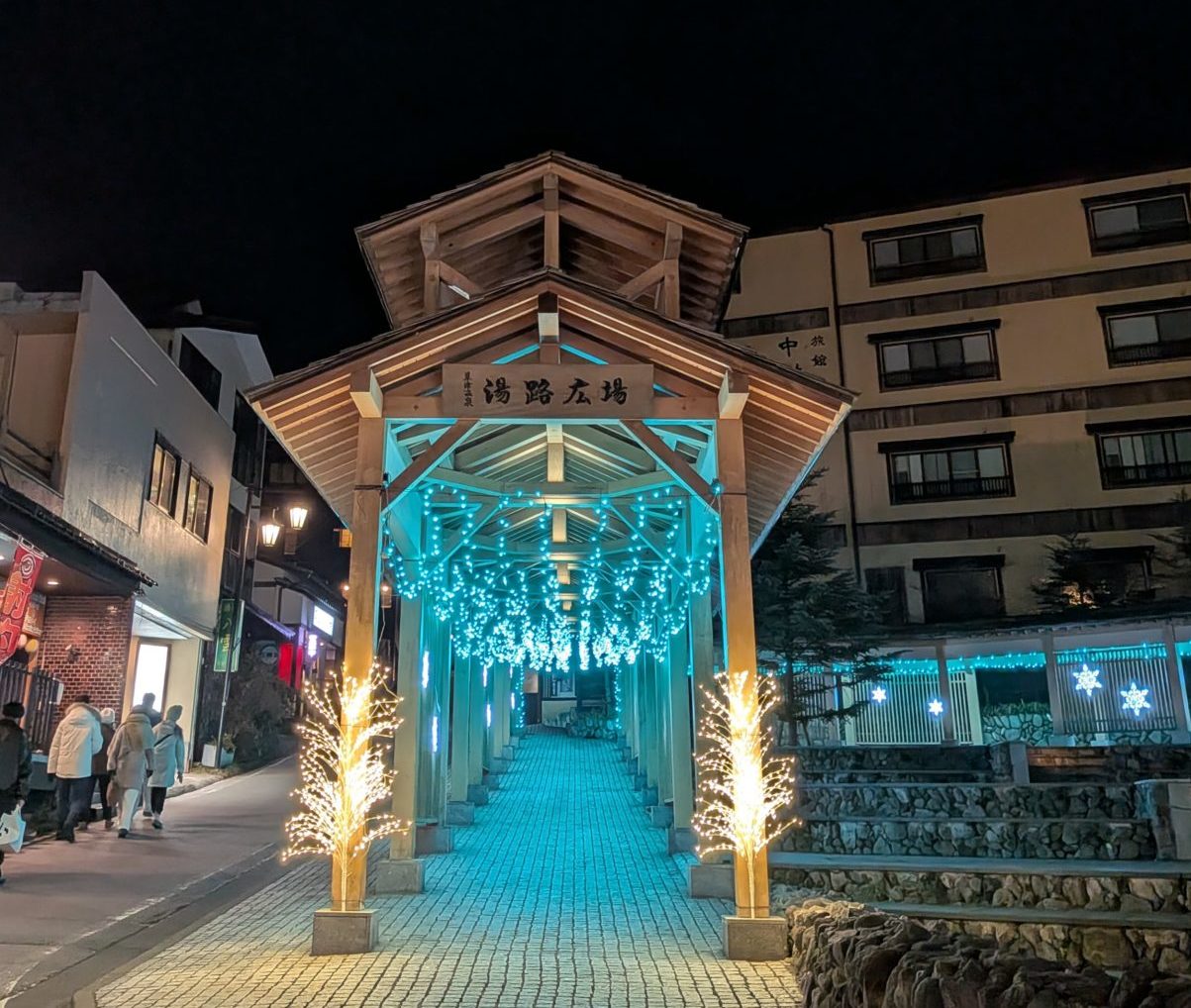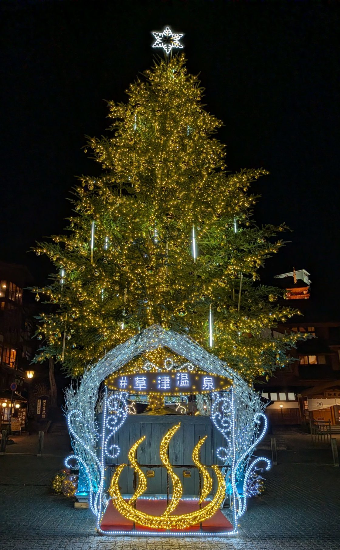 12月に入っていたので、湯畑周辺はクリスマスのイルミネーションでとても綺麗でした🎄