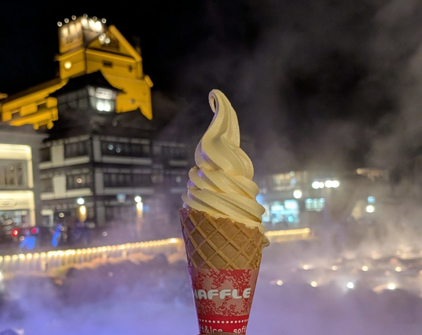 ぶらぶらと散歩をしていたら、ちょっと気になる・・・ソフトクリーム🍦が♥️温泉♨️たまごソフト😮温泉たまごと牛乳のコクがたっぷり????これは食べないと😆